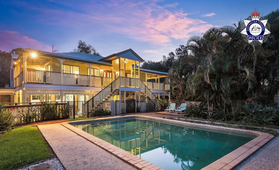 Authorities seized a Queensland waterfront mansion amid claims it was connected to the theft of 950 Bitcoin. Source: Australian Federal Police