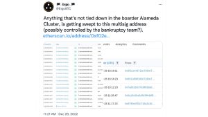 On Dec. 27, 2022, a number of onchain researchers noticed that funds connected to Alameda Research and FTX have moved and have been swapped for other tokens. Reports show the hacker known as the ‘FTX Accounts Drainer,’ traded large sums of ERC20 tokens for digital assets like tether, ethereum, and bitcoin.