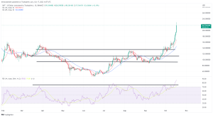 Looking at the chart, today’s move comes as the relative strength index (RSI) of 14-days rose past a key ceiling.