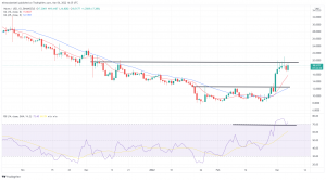 This move pushed WAVES 5.23% higher as of writing this, with the 14-day RSI continuing to hover above overbought territory.