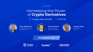 PRESS RELEASE. SDM Financial is thrilled to announce an upcoming webinar focused on digital asset derivatives, taking place on Tuesday, May 23, 2023, at 10:30AM EDT. The webinar is tailored to provide digital asset mining firms, crypto-focused funds, and digital asset investors with valuable insights into the benefits of digital asset derivatives in effectively managing risk and optimizing returns.