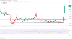Today’s move pushed prices of the meme coin to their highest point since September 13, breaking out of a resistance point in the process.