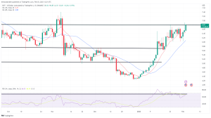 Looking at the chart, the 14-day RSI indicator is at a reading of 66.53, and is fast approaching a ceiling of 68.00.