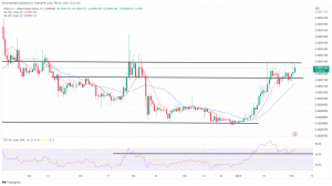 In order for SHIB to recapture yesterday’s peak, this ceiling at 70.00 will first need to be broken.