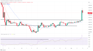 Today’s peak comes as the token rose for a fifth consecutive session, and in turn hit its highest point since July 29.