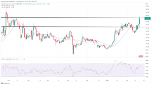 Additionally, the RSI has also moved to a 16-day high, and is tracking at 65.85, which is near a ceiling of 66.00.