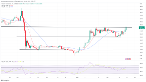 As a result of this move, solana climbed to its highest level since November 8, when price hit a high of $31.78.
