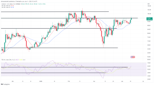 At the time of writing, the index is tracking at 63.74, which is marginally below a higher resistance level of 64.00.