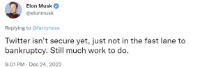 Following the podcast, Musk tweeted clarifying that Twitter is not secure yet and there is still “much work to do.”