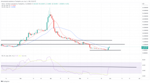 From trading at support, WAVES now looks set to hit resistance which is at $12.30, and has not been reached since May 11.