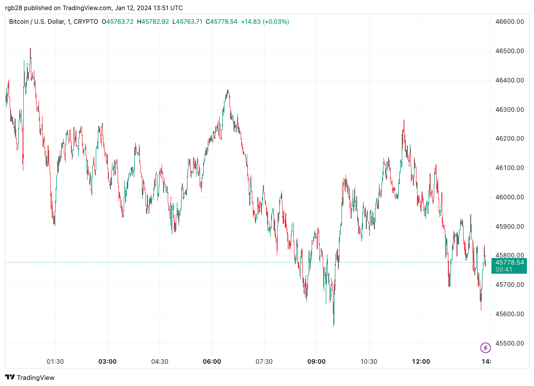 BTCUSD is trading at $45,778.54 on the hourly chart. Source: BTCUSD on TradingView.com
