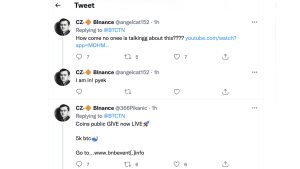 The official Binance account on Twitter complained to the social media company in Musk’s thread and stressed: “Twitter, please, I see enough of my boss already. Can you help so I don’t have to see him 99x more each day?” The account name “CZ Binance” is a very popular spam account name right now, and a simple search will immediately produce 16 accounts pretending to be ”CZ Binance.” Spelling CZ’s name with the term Binance in different variations will produce dozens of CZ bots that are spamming people every single day on Twitter.
