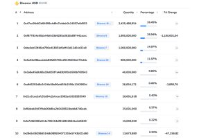 Nansen’s statistics reveal that Binance, the largest crypto exchange by trade volume, holds 6.1 billion BUSD, according to Nansen’s exchange portfolio tool that shows the trading platform’s reserve balances. The BUSD rich list shows that the top ten holders, including Binance’s stash, hold 92.52% of the circulating supply out of 166,645 unique addresses that hold BUSD. Furthermore, the top 100 BUSD holders own approximately 96.09% of the stablecoin’s current supply.