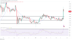 Today’s surge saw bulls push cardano to its highest level since February 23, when price was at a peak of $0.393.