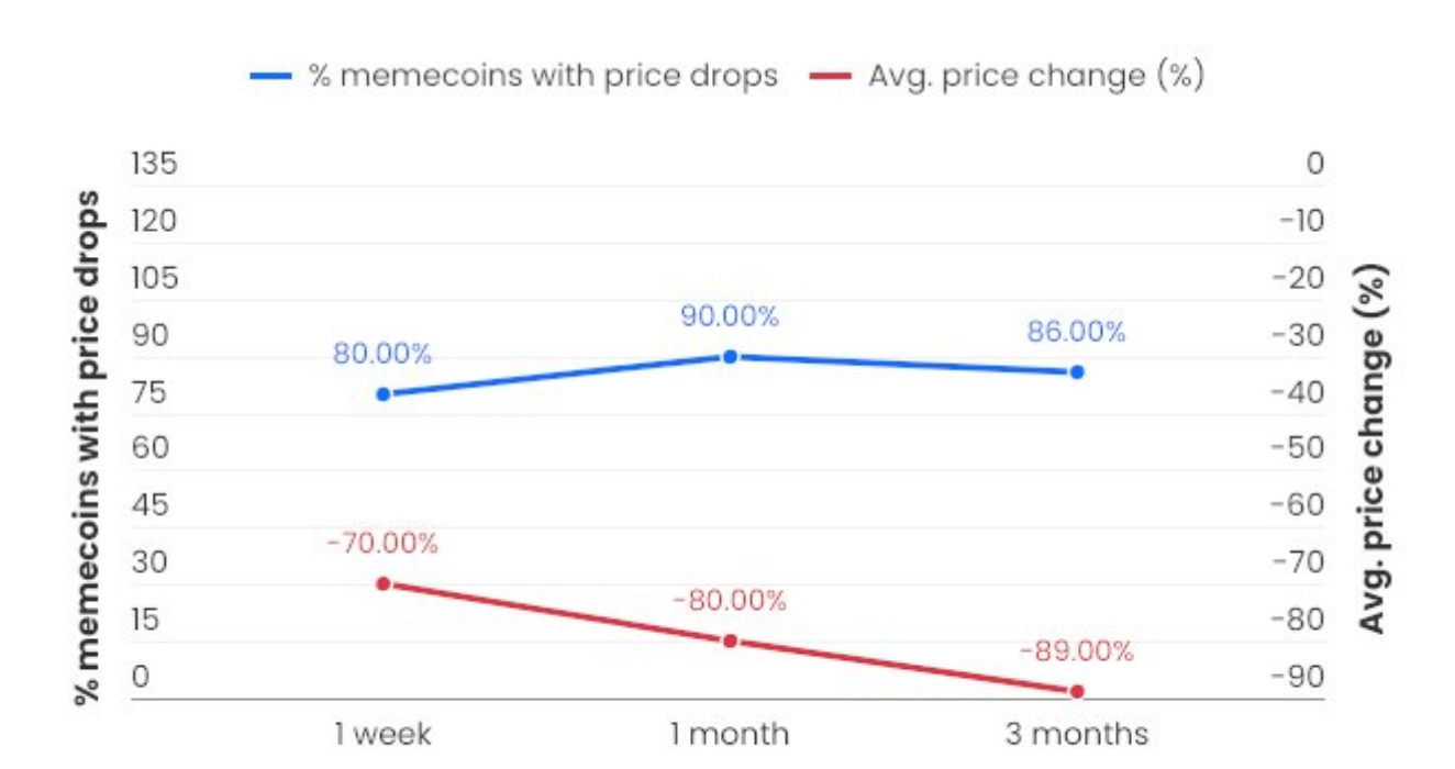 Coinwire revealed that about 86% of memecoins promoted by influencers dipped its value by 90% after three months.