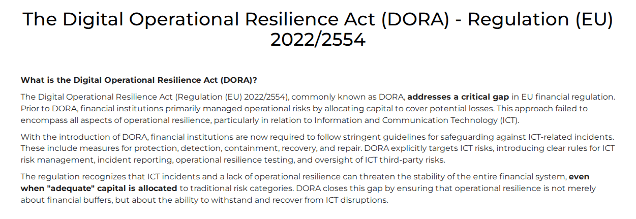 EU authorities consider the DORA policy as a crucial step to enhance the digital operational resilience framework of financial institutions operating in the countries that are part of the regional bloc, saying that the new regulation aims to address the inconsistencies and gaps in the cyber risk management within the bloc.