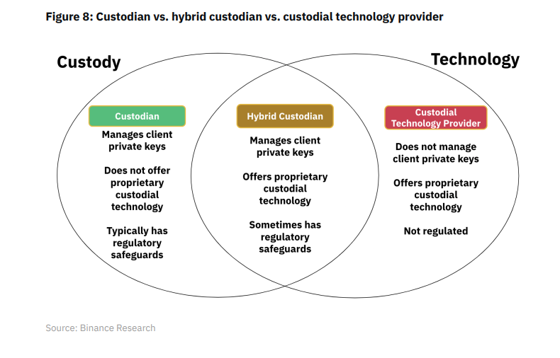 Binance has classified traders who custody assets on behalf of institutions into 3 categories: custodians, custody technology providers, and hybrid custodians.
