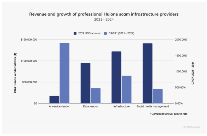 The pig butchering phenomenon, in particular, saw a staggering 210% increase in total deposits throughout 2024, despite a 55% drop in average deposit size per victim.