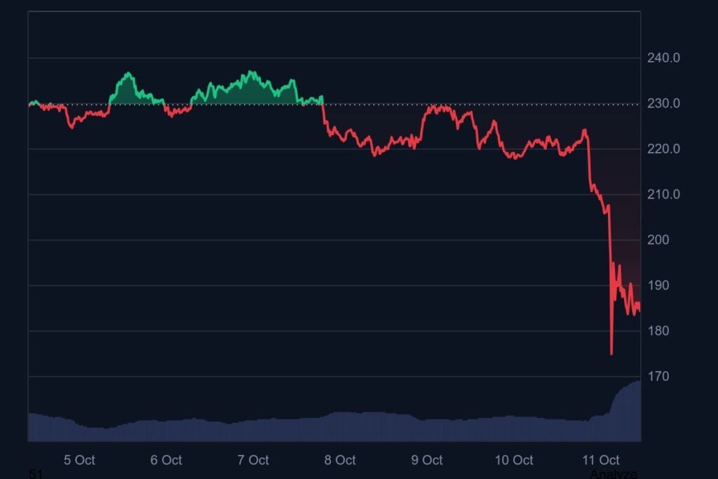The price, currently hovering near $184, reflects a correction that may not align with its actual network strength. Analysts now view this zone as a potential accumulation point before a recovery to its previous $220 range and possibly beyond.