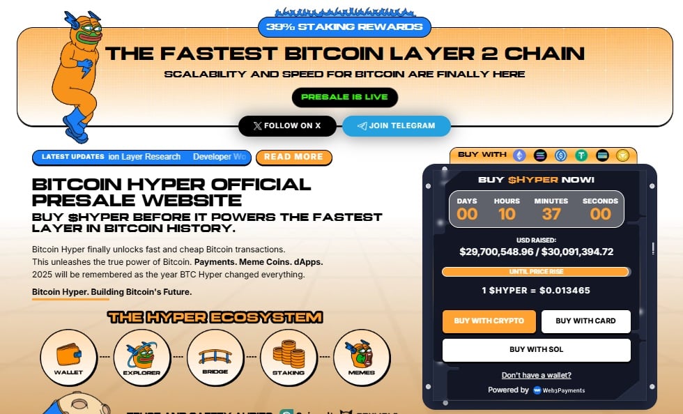 By integrating the Solana Virtual Machine, Bitcoin Hyper also supports DeFi applications, payments, and smart contract functionality while maintaining Bitcoin-level security. The project already raised nearly $30 million in presale.