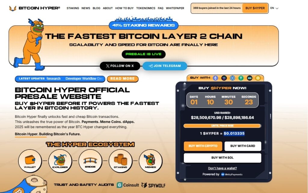 With nearly $28.6 million raised and growing attention on its utility, Bitcoin Hyper is positioning itself as a potentially significant addition to the broader Bitcoin ecosystem, making it one of the best crypto to buy now.
