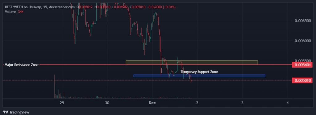 This decline eventually found support around $0.00510–$0.00515, where buyers stepped in with conviction. From this support level, $BEST rebounded toward $0.00530, establishing the early trading floor and signaling buyer confidence.