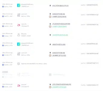 Following that, the owner of the wallet address that got the 1,262 ETH began a series of transfers. The wallet’s owner used Uniswap to exchange 450 ETH for 24 Wrapped Bitcoin (WBTC) in two distinct transactions.