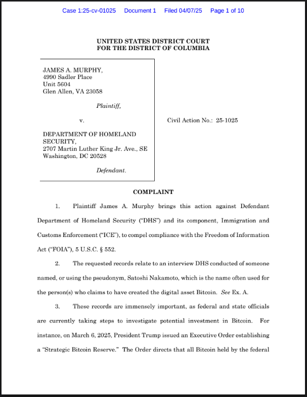 James Murphy, also referred to online as ‘MetaLawMan,’ is requesting that the government hand over information regarding Satoshi Nakamoto, the enigmatic figure behind the largest cryptocurrency in the world.