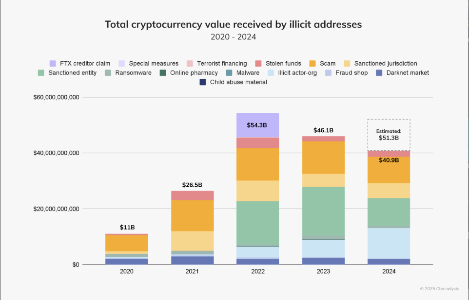 Total crypto value received by shady addresses from 2020 to 2024. Source: Chainalysis