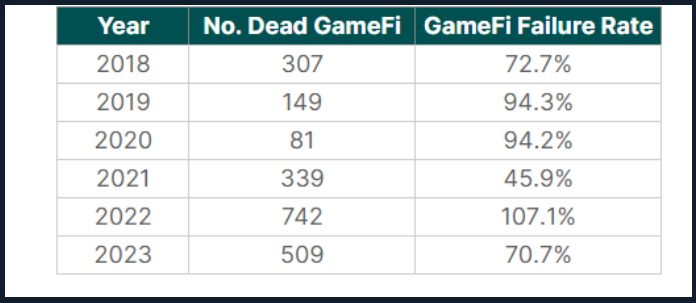 Of the games released this year, 509 (or 71%) have not succeeded as of 2023. There may be a chance for the Web3 gaming market to stabilize given this decline in failure rates.