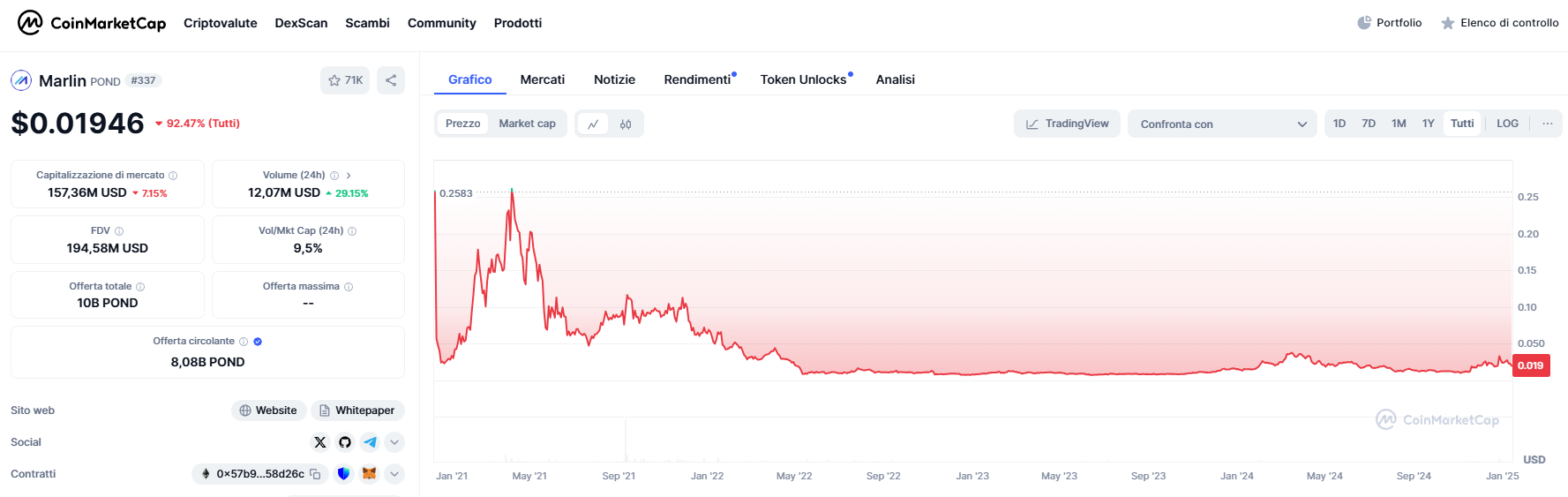 Il token nativo di Marlin, $POND, non ha avuto lo stesso successo di $PHA quest’anno, e si è apprezzato solo del 27%. Una performance non memorabile che rende il token molto appetibile nel caso di una nuova Bull Run.