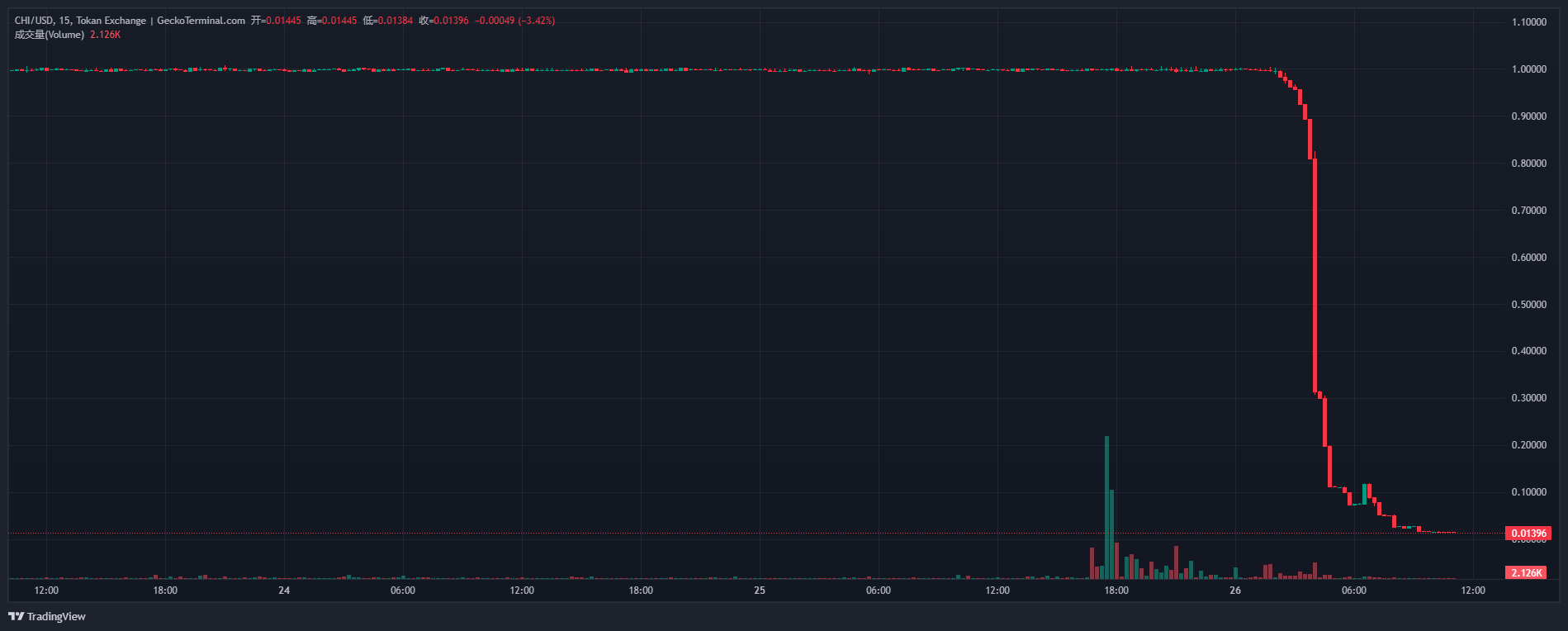 Essence Finance’s stablecoin CHI has fallen more than 98% in the past 24 hours to $0.077 amid concerns that more than $20 million in collateral may have been stolen.