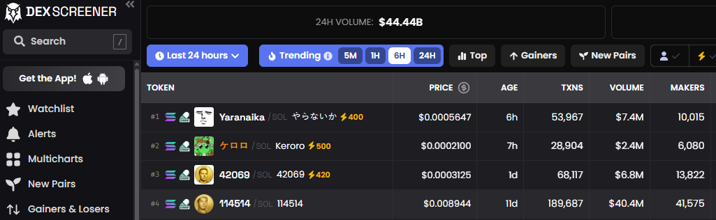 Per data from DexScreener, the 114514/SOL trading pair has witnessed not less than 100,000 sell orders over the past 24 hours, compared to only 55,000 buy orders. Analysts see this this as a signal of bearish momentum, suggesting that more downward movement could be on the horizon if sellers persist.