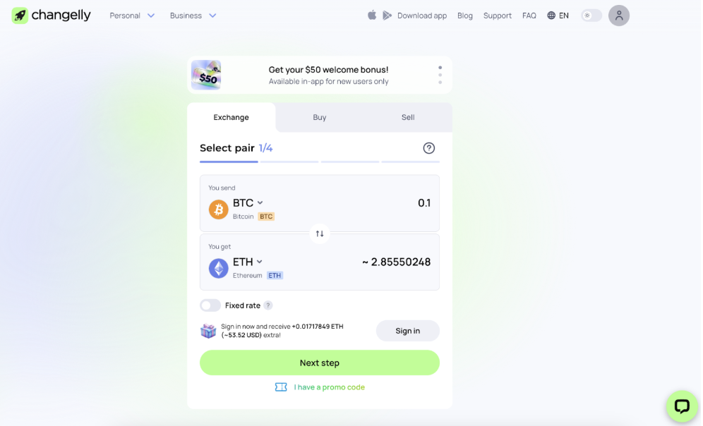 Changelly connects to the orderbook of multiple highly liquid trading platforms to find and execute trades. Using the data on liquidity and prevailing rates on these exchanges, it provides users with the best available exchange rates for their trade. Users can complete swaps without registering an account, though registration enables transaction history tracking, bonuses, and beneficial promo perks.