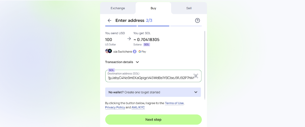 - Enter your destination wallet and click Next Step to proceed