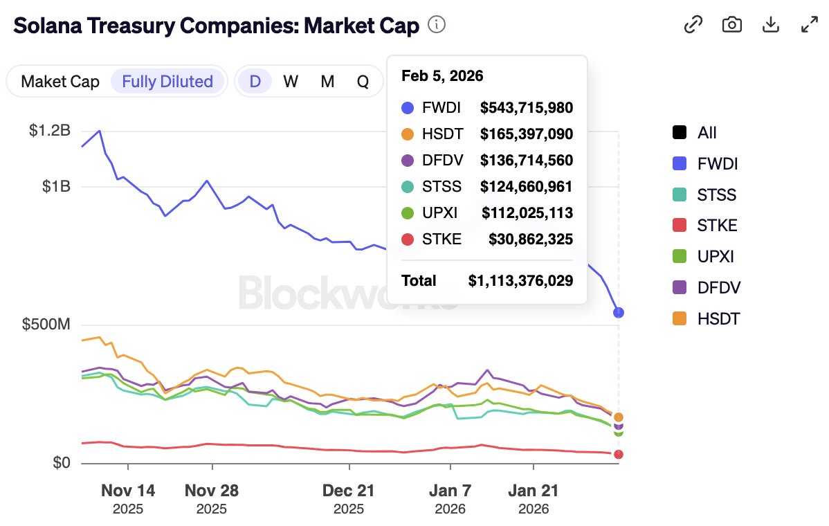 Other firms such as DeFi Dev Corp, Sharps Tec,h and Upxi incurred losses of 42%, 68% and 47% respectively. As of February 5, 2026, the biggest treasury company is Forward Industries, but all companies are going through a downturn.