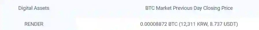 As per the notice, RENDER is available for the BTC market previous day closing price of 0.00008872 BTC.