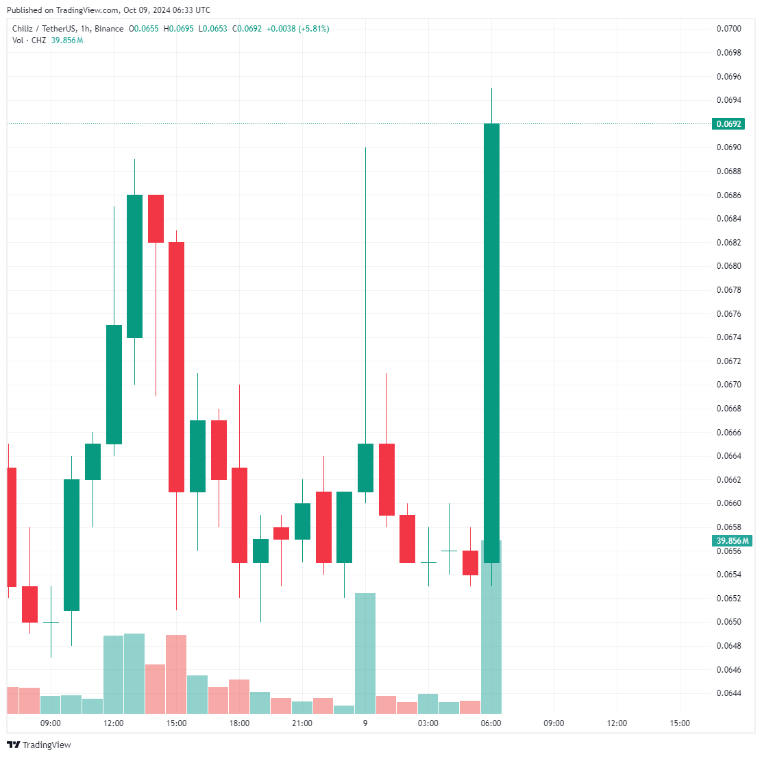 Following the Binance announcement, the Chiliz (CHZ) price started to rise.