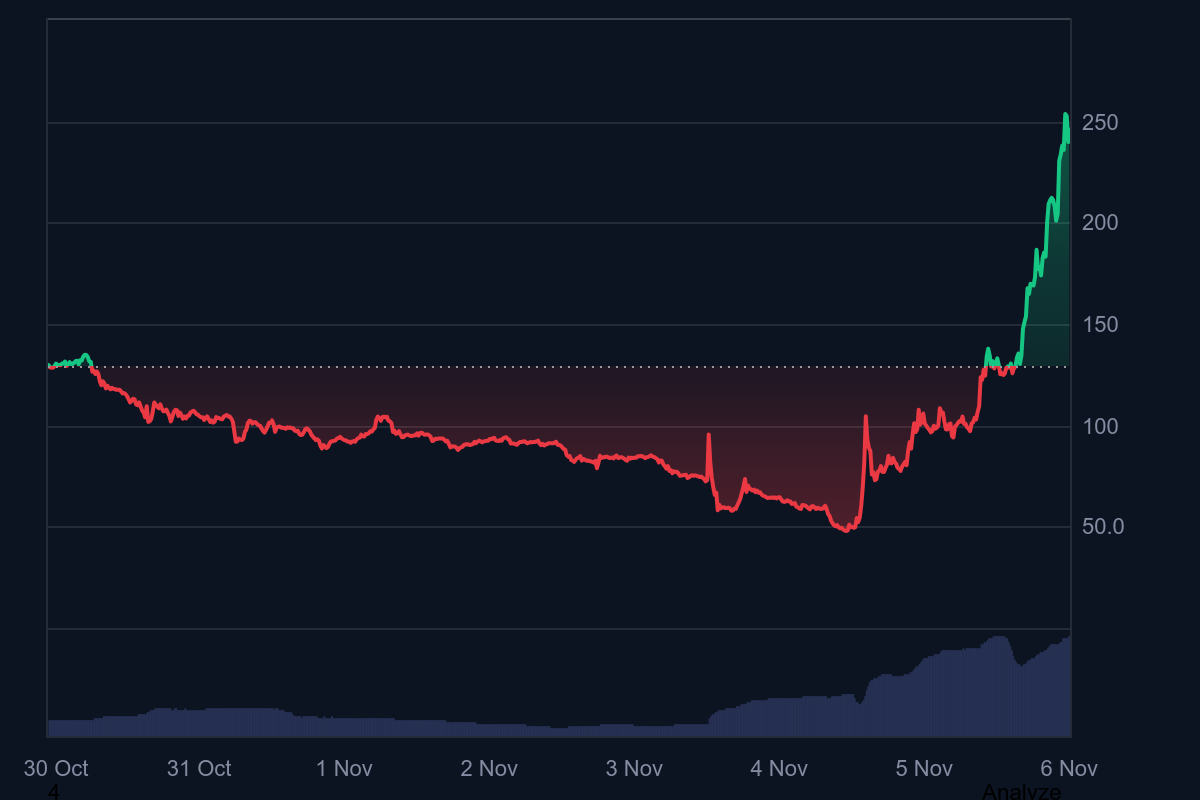 However, the price has risen by nearly 250% from its base level in the last two days, meaning the investor is missing out on a potentially large profit.