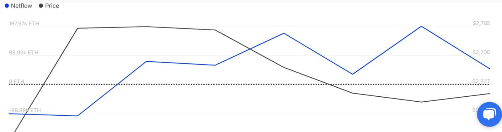 This surge suggests that whales were buying more ETH tokens than they were selling, reflecting growing market confidence.