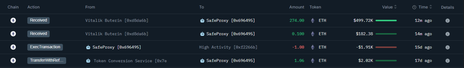 Just in: Vitalik (@VitalikButerin) has sent 274.1 $ETH ($500k), as a grant or donation to a contract deployed by @0xisla, who is building @zuitzerland.