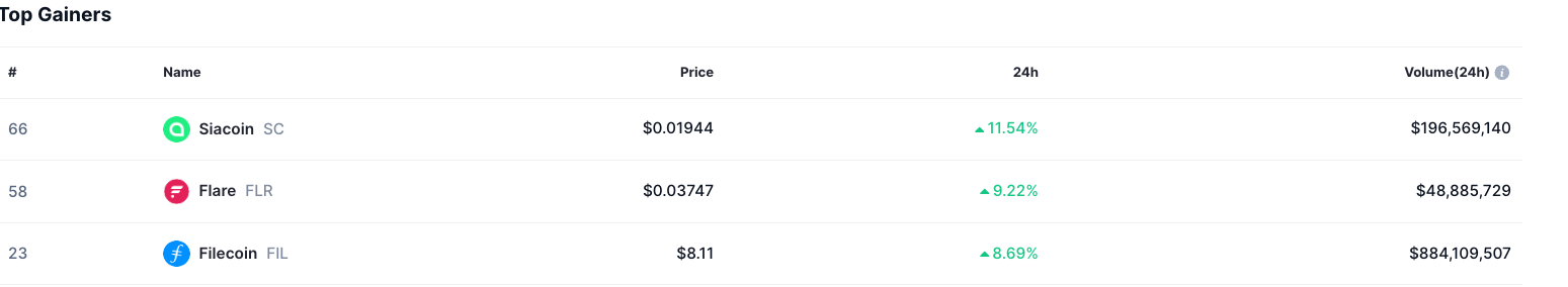 Apart from Filecoin, Siacoin (SC) was also at the top of the most profitable altcoins with its 11% rise.