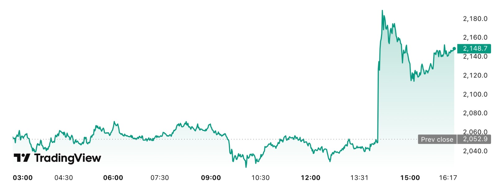 Meanwhile, the ETH price was at $2,148, rising over 3% in the past 24 hours. The asset had declined more than 5% over the previous week. Ethereum support is between $2