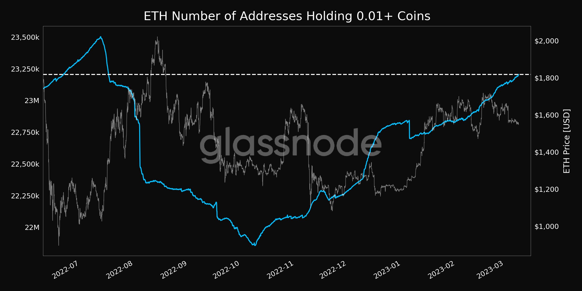 According to Glassnode, the number of addresses holding more than 0.01 coins appreciated over the past month. In fact, it hit a 7-month high of 23.20 million.