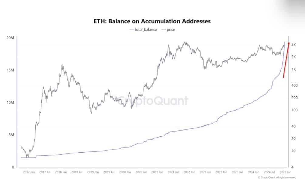 According to CryptoQuant, Ethereum accumulating addresses have surged significantly lately, outpacing previous cycles while doing so.