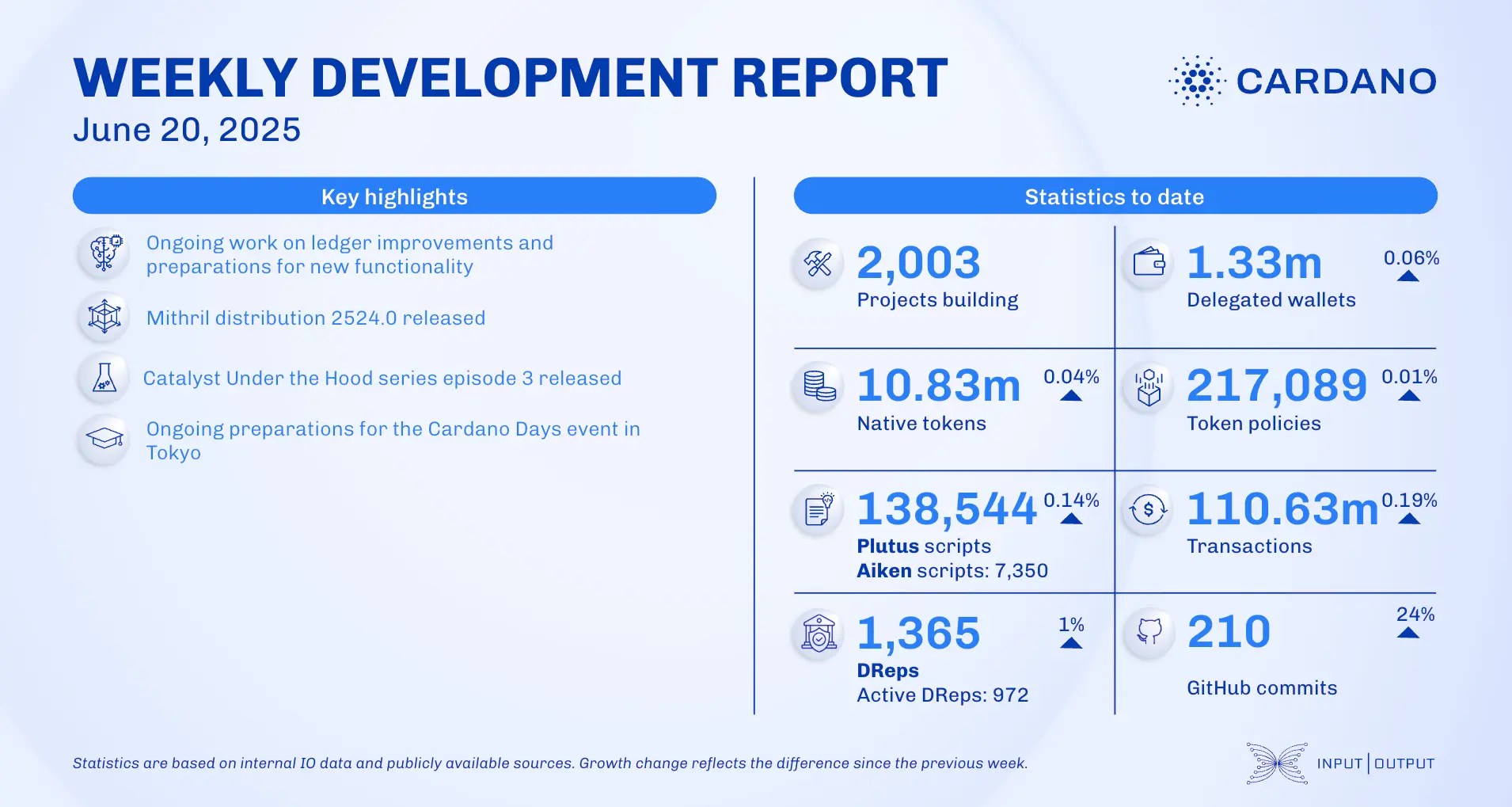 Cardano continues its steady expansion across key infrastructure, governance, and ecosystem initiatives, as reflected in its latest development report.