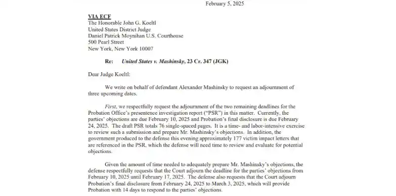 However, Mashinsky’s legal team argued that the extensive nature of the 76-page draft report, combined with the late disclosure of 177 victim impact statements, requires additional time for thorough review. They have requested an extension of the objections deadline to February 17, 2025, and the final disclosure deadline to March 3, 2025. Both the government and the probation Office have not expressed objections to these adjustments.