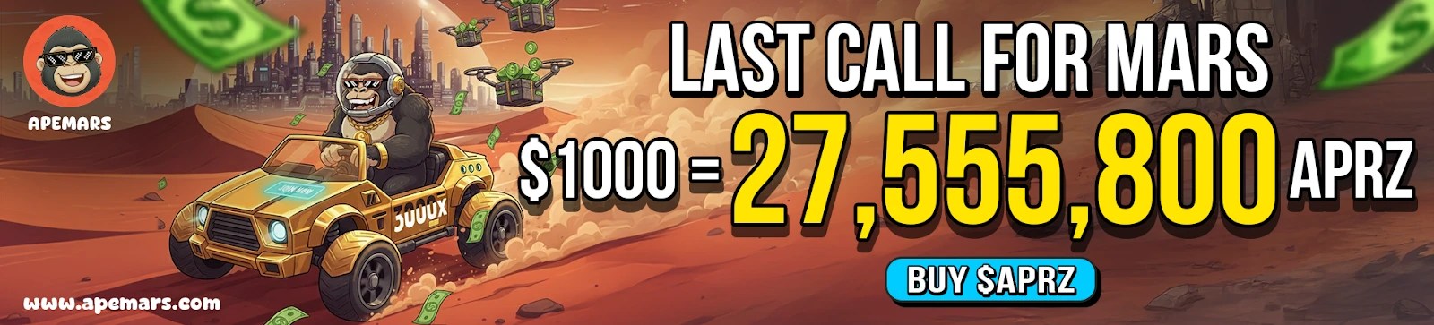 But here’s the lesson: by the time Pepe trended across crypto Twitter and mainstream outlets picked up the story, early-stage gains were already locked in. Latecomers chased headlines while early holders quietly exited at life-changing multiples. It’s the same story every cycle, and right now, APEMARS is positioned in that same pre-explosion window where this top meme coin presale delivers asymmetric upside before the crowd floods in.