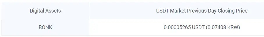 USDT Market Previous Day Closing Price: 0.00005265 USDT (0.07408 KRW)
