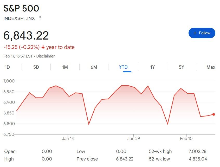 S&P 500 stock market index YTD chart. Source: Google